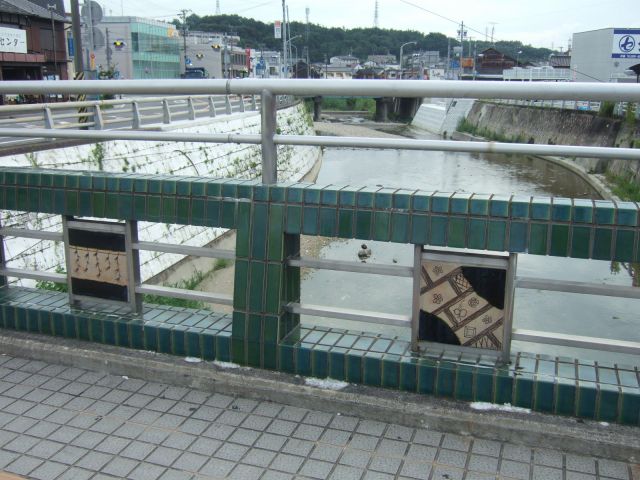 記念橋は、2009年7月現在工事中。 尾張瀬戸の玄関口に近く幅の広い大きな橋なので、きれいに整備されることでしょう。 |